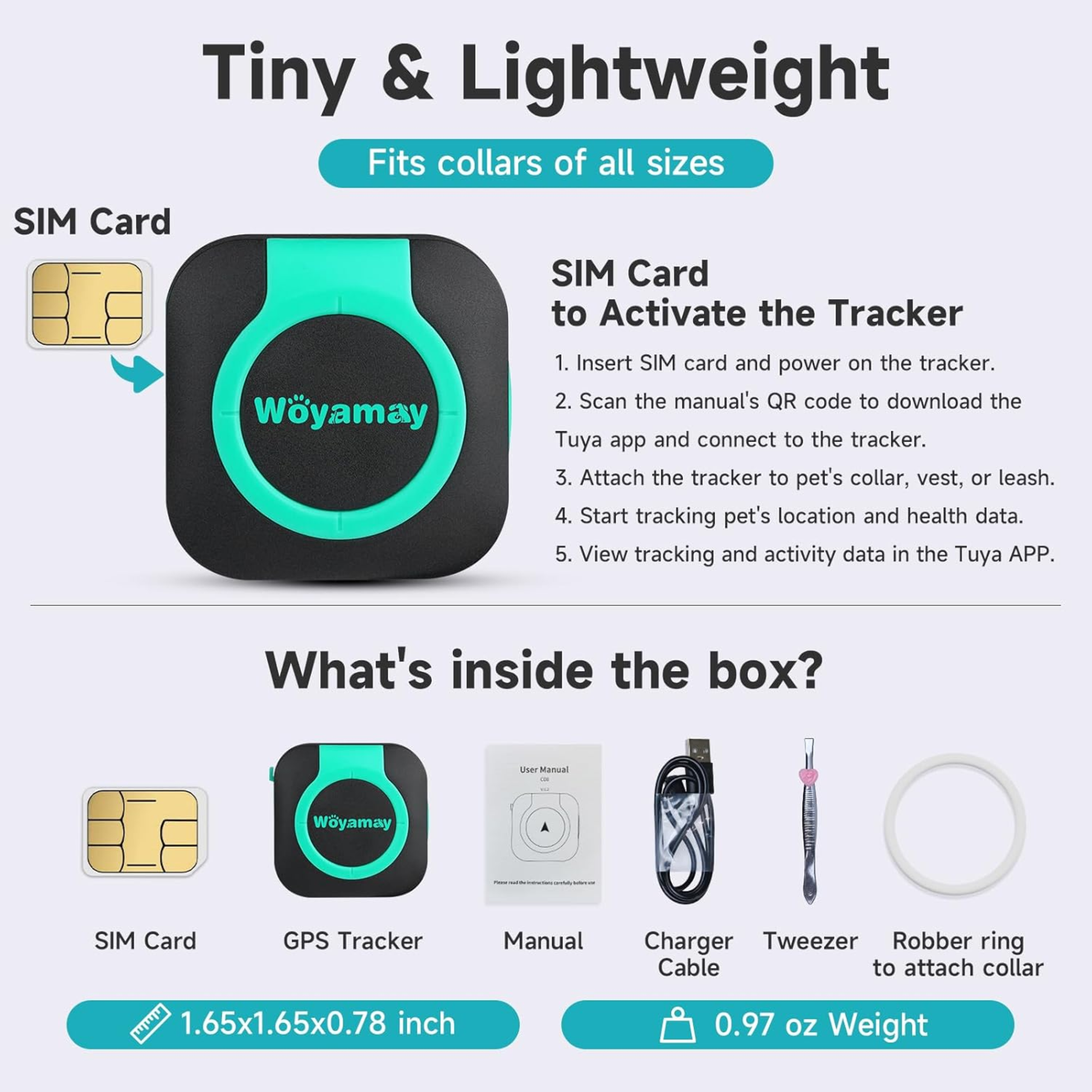 Waterproof GPS Tracker with Health Monitor, Compatible with Any Collar (Universal Android & iOS).